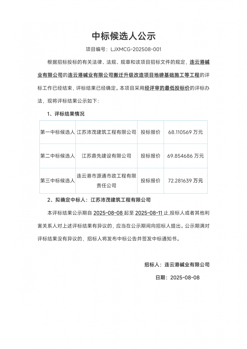 搬遷升級(jí)改造項(xiàng)目地磅基礎(chǔ)施工等工程中標(biāo)候選人公示