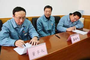 會(huì)上還宣讀了《關(guān)于表彰2017年度HSE先進(jìn)單位和個(gè)人的決定》,公司董事長(zhǎng)代表公司與重堿車間、煅燒車間等5家部門代表簽訂了2018年HSE責(zé)任書(shū)。