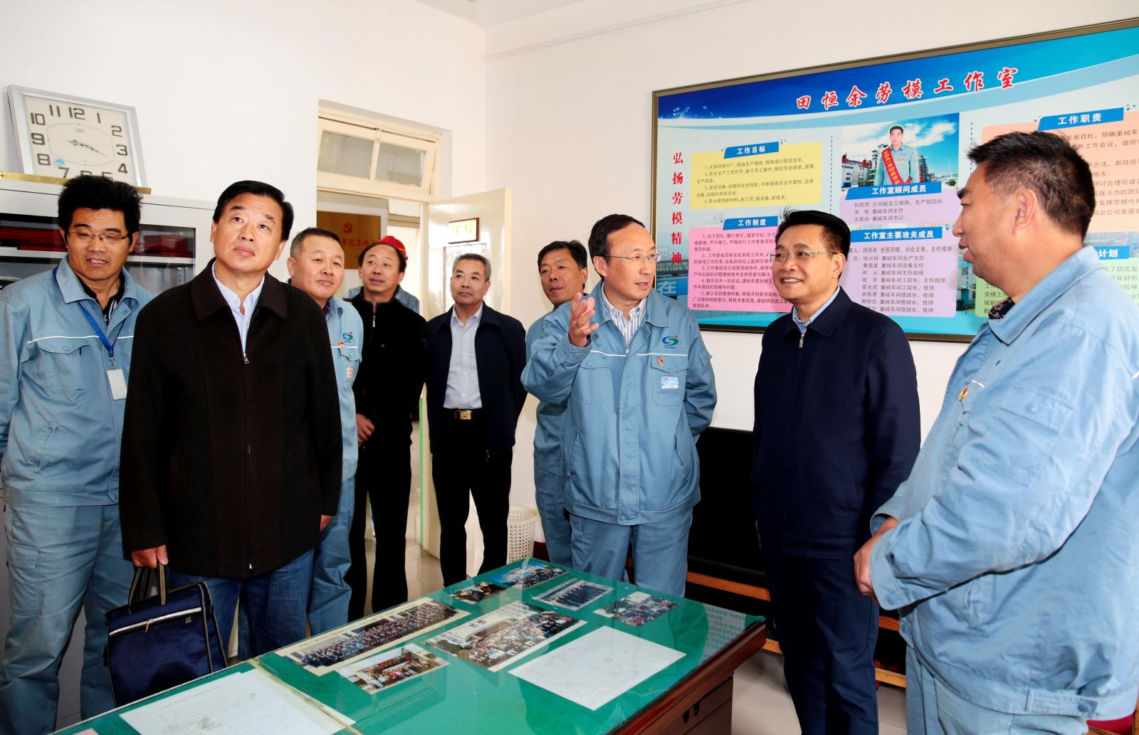 在田恒余勞模工作室,王家全詳細(xì)詢問(wèn)公司勞模情況,當(dāng)他得知田恒余的“黃泥堵漏法”、“七字操作法”等小發(fā)明、小創(chuàng)造給公司帶來(lái)的豐厚經(jīng)濟(jì)效益時(shí),他指出,自己優(yōu)秀更要繼續(xù)發(fā)揚(yáng)好勞模帶頭引領(lǐng)作用,勞模工作室的關(guān)鍵在創(chuàng)新,利用好這平臺(tái),將勞模精神和技能傳承下去,為公司持續(xù)發(fā)展提供人才保障。