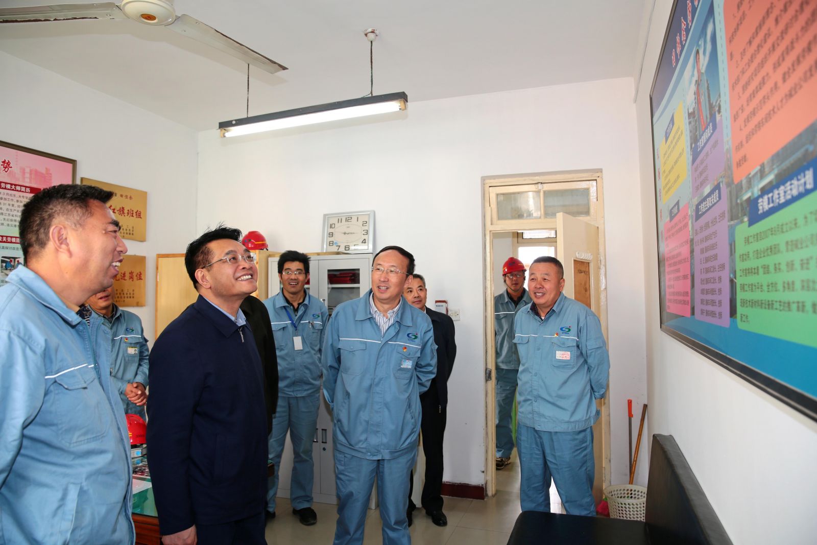 在煅燒車間職工之家,王家全查看了“優(yōu)秀合理化建議”、“巡檢之星”、“崗位練兵卡”等專欄及聽(tīng)取車間重點(diǎn)介紹后,對(duì)堿業(yè)公司煅燒車間以人為本,實(shí)行民主管理的做法給予了高度肯定,建議該車間繼續(xù)推進(jìn)該項(xiàng)活動(dòng),讓職工參與民主管理,為職工搭建展現(xiàn)能力,發(fā)揮主人翁地位的平臺(tái),職工與公司共同發(fā)展,實(shí)現(xiàn)共贏。