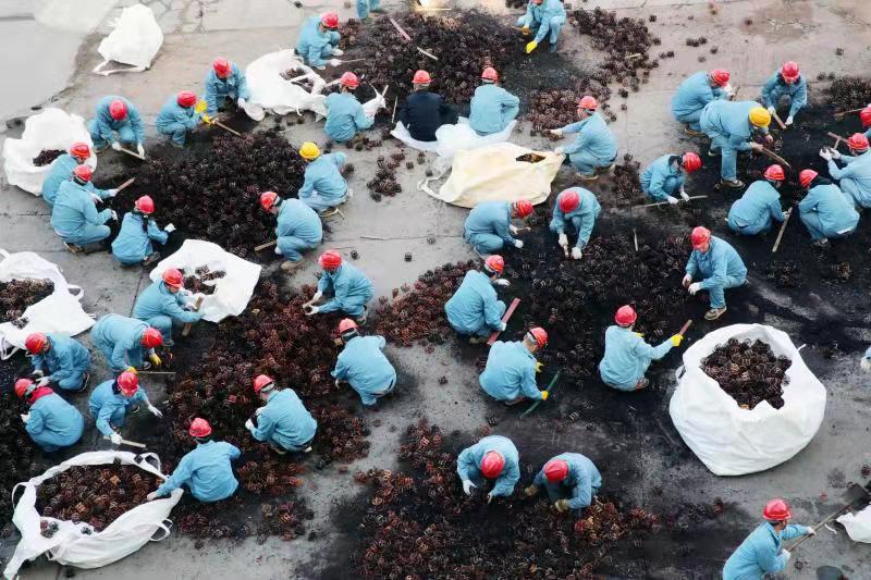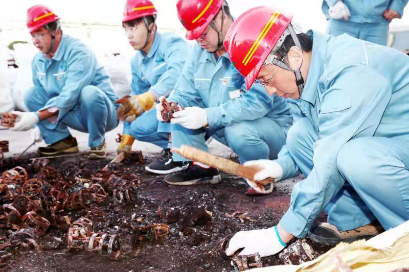 由于清理工作全靠人力完成,崗位人員一邊要維持生產(chǎn),一邊要清理填料,工作量非常大。11月12日下午,公司黨委書記、董事長張衛(wèi)民在調(diào)研重堿車間生產(chǎn)現(xiàn)場時了解到這一情況后,當(dāng)機(jī)立斷,立即組織公司領(lǐng)導(dǎo)及各部門黨員干部義務(wù)勞動,協(xié)助重堿車間完成鮑爾環(huán)填料清理回收工作。