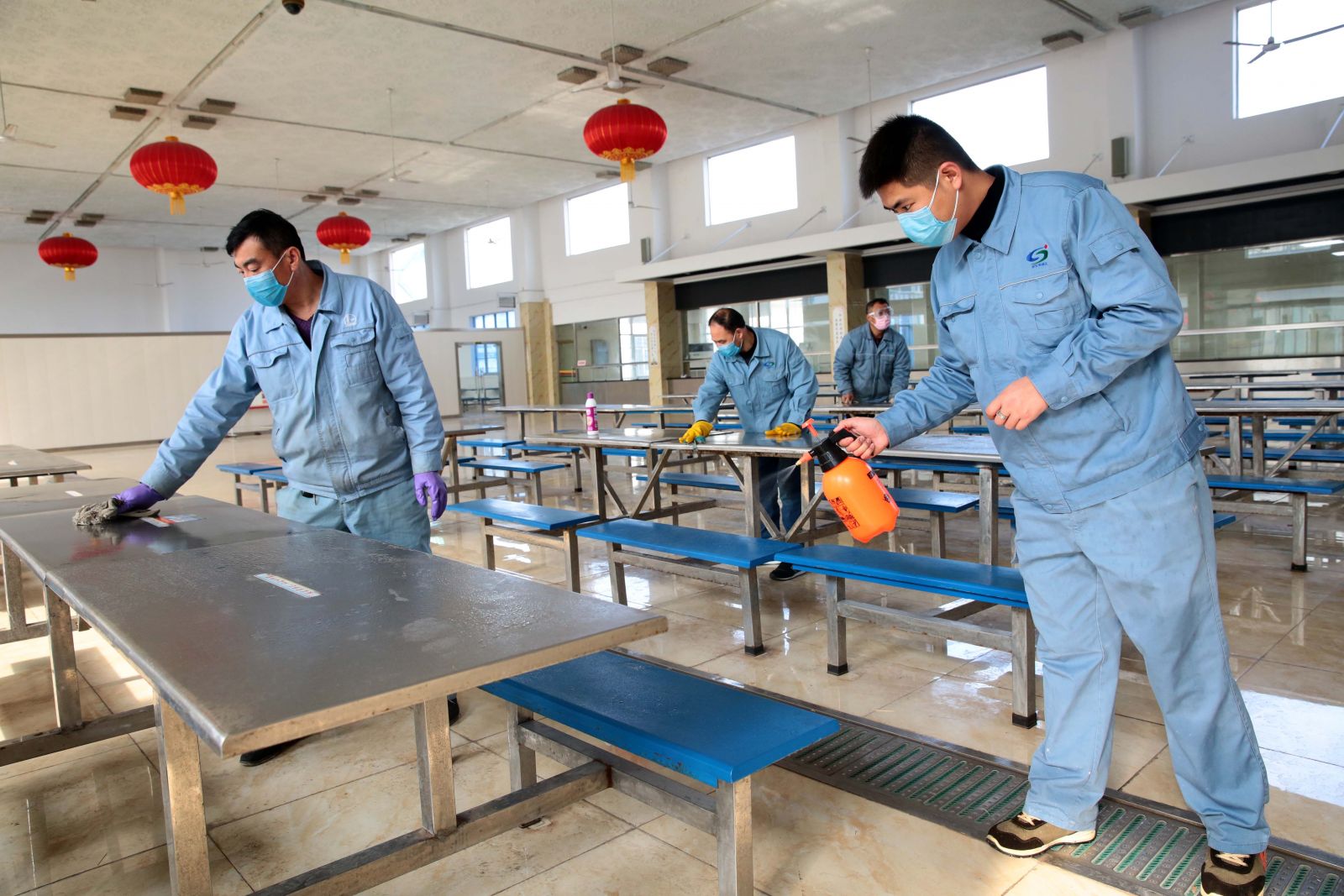 公司內(nèi)部的事宜由副總經(jīng)理焦旺盛統(tǒng)一負責(zé)安排落實,嚴抓內(nèi)部管控。健康安環(huán)部負責(zé)布置落實各班組建立職工體溫臺帳,發(fā)現(xiàn)異常情況及時報告。加強檢查頻率,建立日報告制度,負責(zé)廢舊口罩回收處理;對接供應(yīng)部做好應(yīng)急防護物資的備、采工作,每天統(tǒng)計好公司的應(yīng)急物資并按要求上報上級部門;安排好人員的測溫工作。物管中心定時對食堂、浴室等公共場所消毒;保衛(wèi)部加強門禁管理,做好進入公司人員的監(jiān)管,非我公司職工未經(jīng)批準(zhǔn)一律暫停進入公司;同時負責(zé)口罩的發(fā)放;設(shè)備部、技術(shù)部通知公司外委承包商暫停進廠作業(yè);人力資源部負責(zé)通知勞務(wù)承包商,除從事正常倒班的外用工外,其余一律暫停進廠作業(yè);黨群部負責(zé)通過公司內(nèi)網(wǎng)、微信公眾號等宣傳平臺加大防控工作的正面宣傳和引導(dǎo)的力度,多宣傳一些防控知識,多宣傳防控期間公司一些典型照片、事跡,同時向上級主管部門報道;辦公室做好節(jié)假日延期的相關(guān)通知與安排,及時傳達上級精神,協(xié)調(diào)、配合好公司內(nèi)部各部門、車間做好防控的相關(guān)工作。