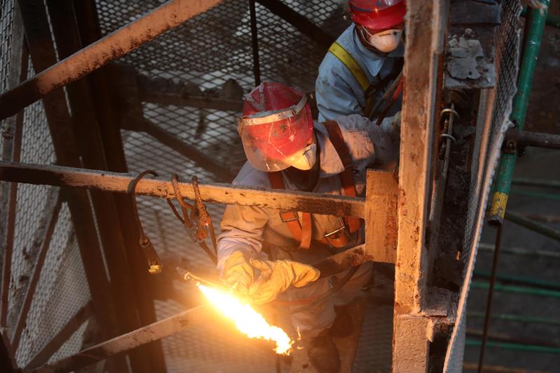2月3日,2#石灰窯突發(fā)故障,對此,檢修車間領導帶領班組成員7人在做好安全以及病毒防御各項措施后,加班加點,其中黨員同志技術員朱孔慧和班長謝文東沖鋒在前,從早上八點一直工作到了夜里十點,終于將故障消除,順利實現(xiàn)了石灰窯運行。