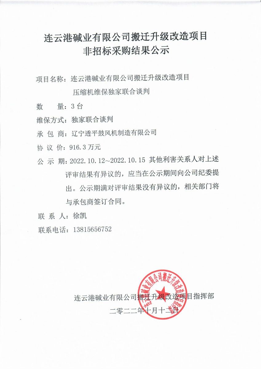 壓縮機(jī)維保獨(dú)家聯(lián)合談判結(jié)果公示