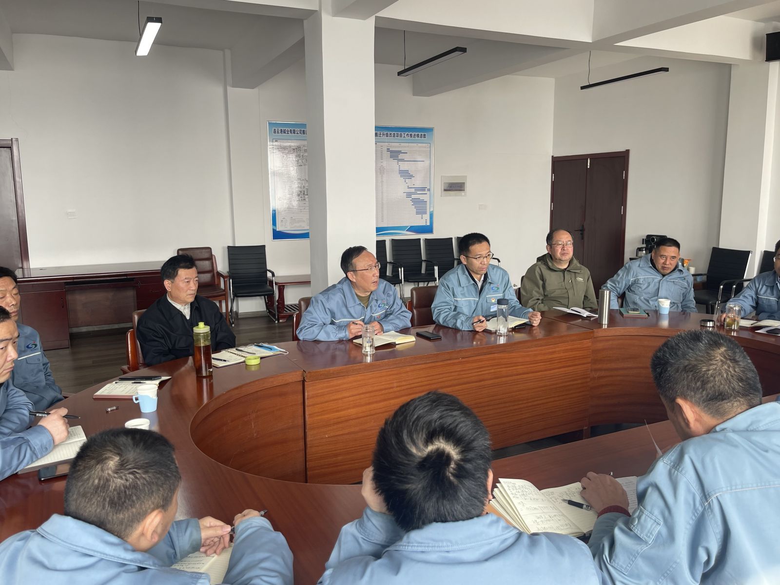 3月6日上午9:30,公司在灌云新項(xiàng)目部召開搬遷升級改造項(xiàng)目例會。公司黨委書記、董事長張衛(wèi)民同志,黨委副書記、副董事長、總經(jīng)理姜自成同志,公司領(lǐng)導(dǎo)鈕維社、劉軍、焦旺盛、黃建德、高二飛、楊全及各部門領(lǐng)導(dǎo)等30余人參加了會議。