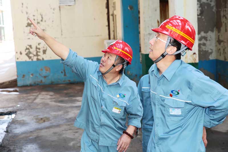 7月17日,公司黨委書記、董事長張衛(wèi)民分別深入重堿、石灰、儲運(yùn)等生產(chǎn)裝置現(xiàn)場進(jìn)行高溫慰問,開展安全檢查。