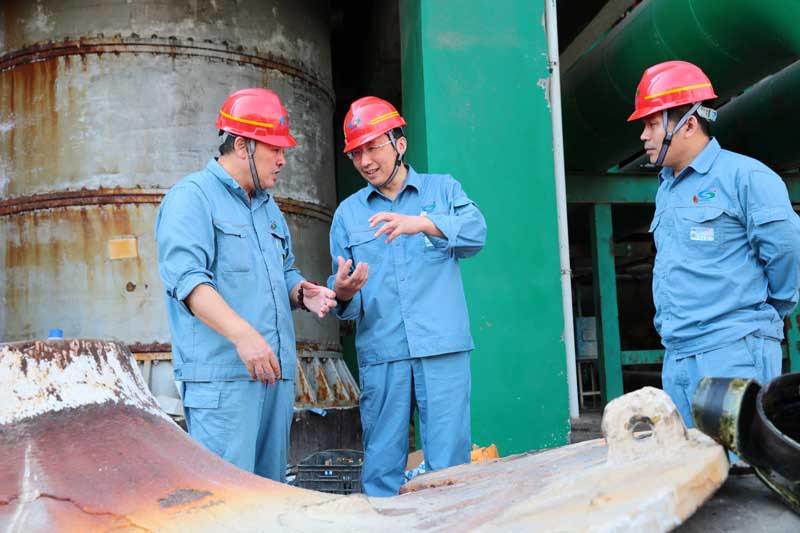 在重堿車間現(xiàn)場,張衛(wèi)民囑咐車間負(fù)責(zé)人,在高溫時節(jié)不僅要抓好生產(chǎn)運(yùn)行,更要注意酷暑天氣下安全管理和員工的身體健康。