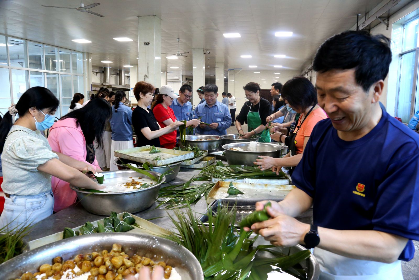 為保證活動(dòng)順利開展,公司物管中心提前做好食材的采購,并對(duì)上萬余片棕葉進(jìn)行煮熟晾干,300斤糯米進(jìn)行浸泡,100余斤蜜棗進(jìn)行清洗晾干。同時(shí),為了保證所有就餐職工每人兩個(gè)粽子的供應(yīng)量,堿業(yè)公司工會(huì)邀請(qǐng)23名內(nèi)退職工參與活動(dòng)。