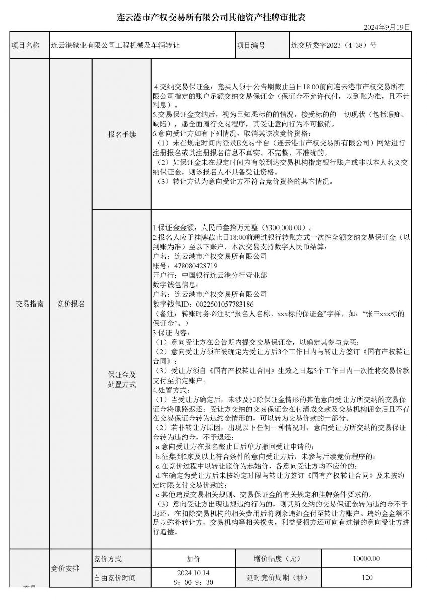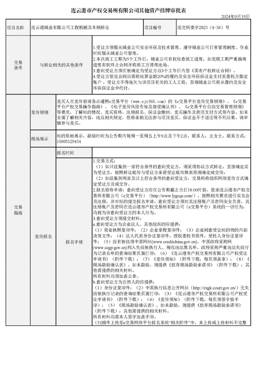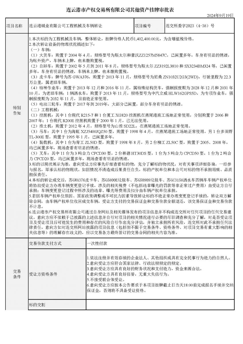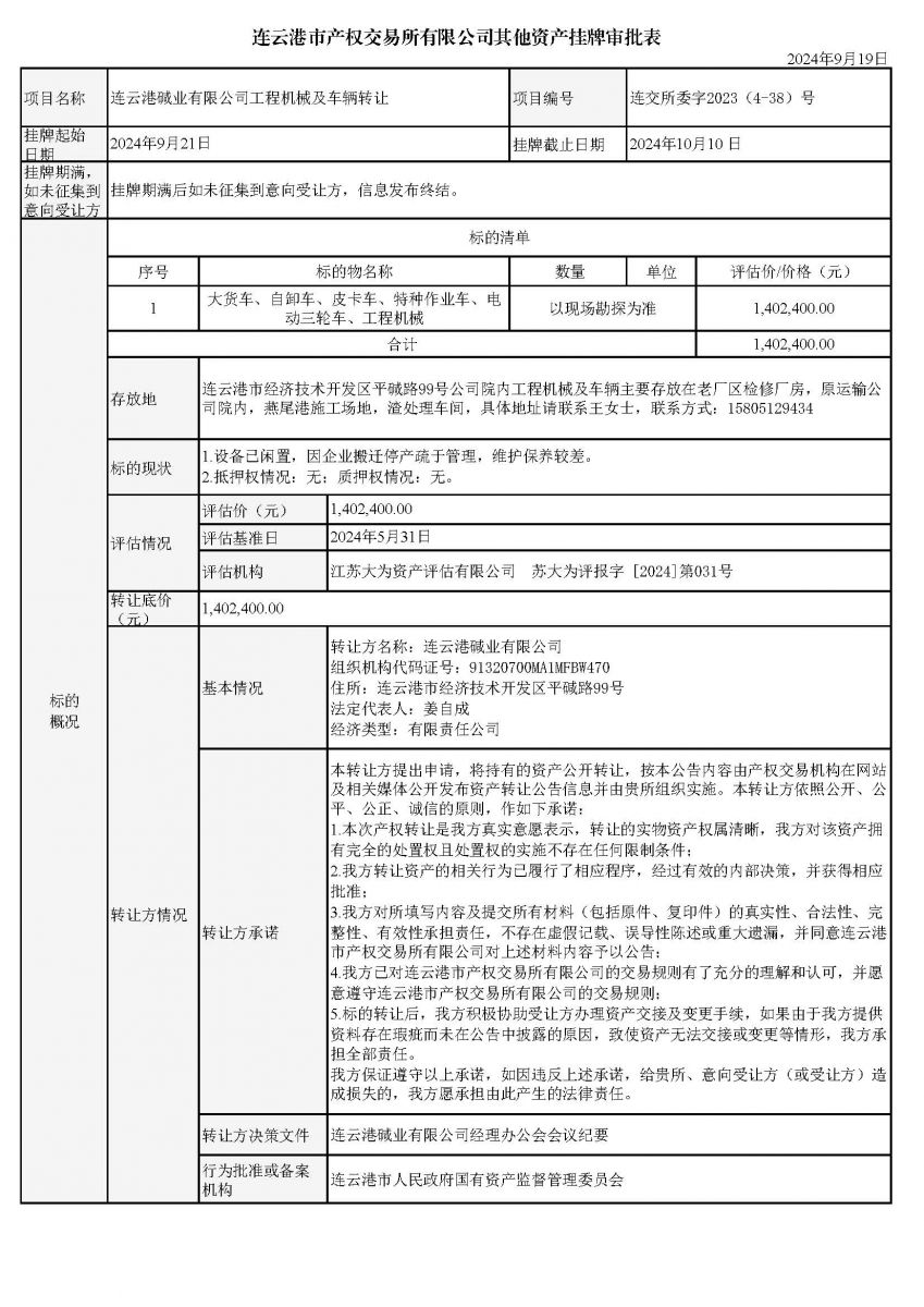 連云港堿業(yè)有限公司工程機(jī)械及車(chē)輛轉(zhuǎn)讓資產(chǎn)掛牌審批表