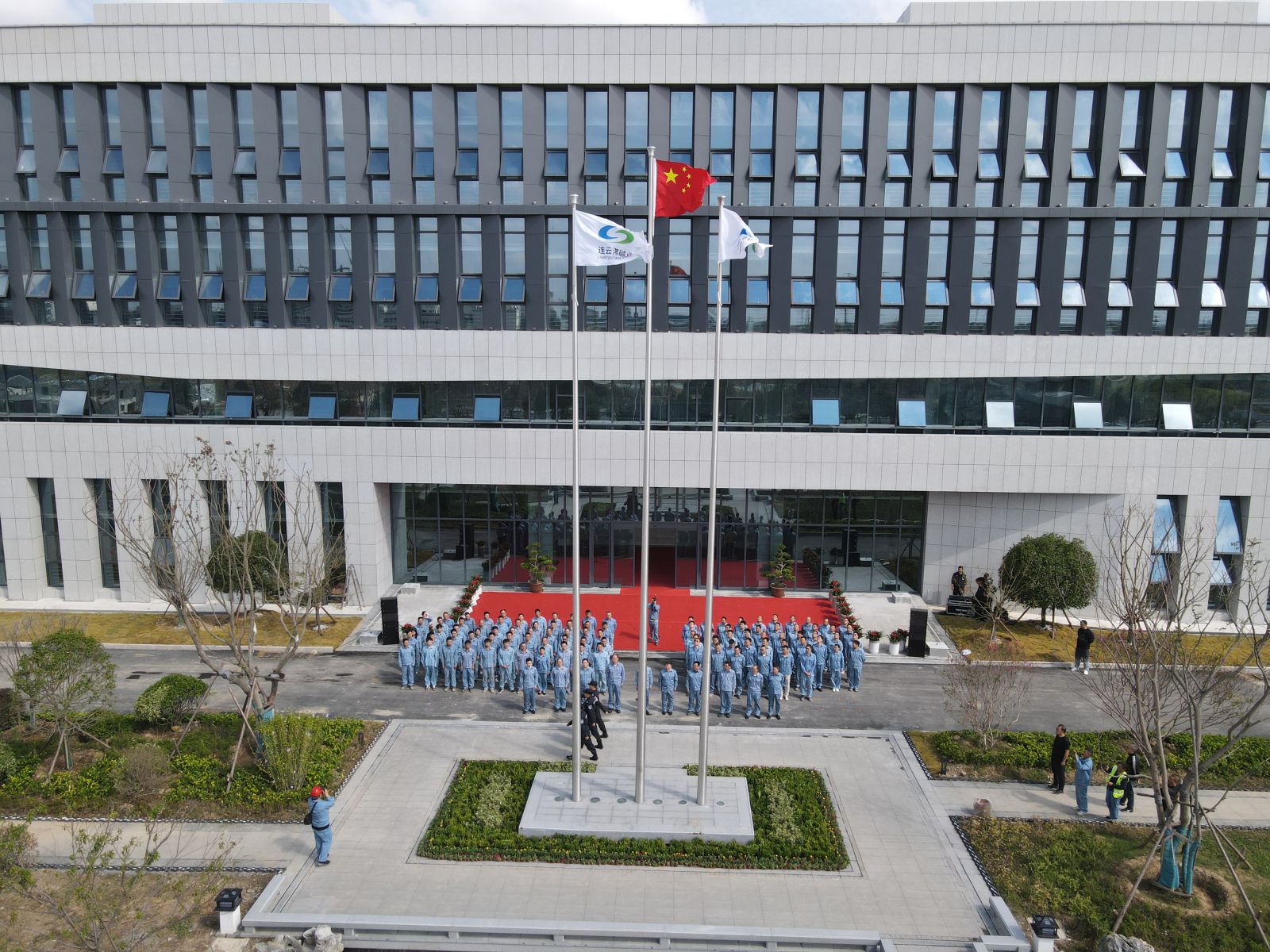 儀式伊始,公司在綜合樓前舉行莊嚴(yán)肅穆的升旗儀式,3名護(hù)旗手邁著鏗鏘有力的步伐,莊重地將國旗護(hù)送至升旗臺(tái)。伴隨著雄壯的《義勇軍進(jìn)行曲》,五星紅旗冉冉升起。