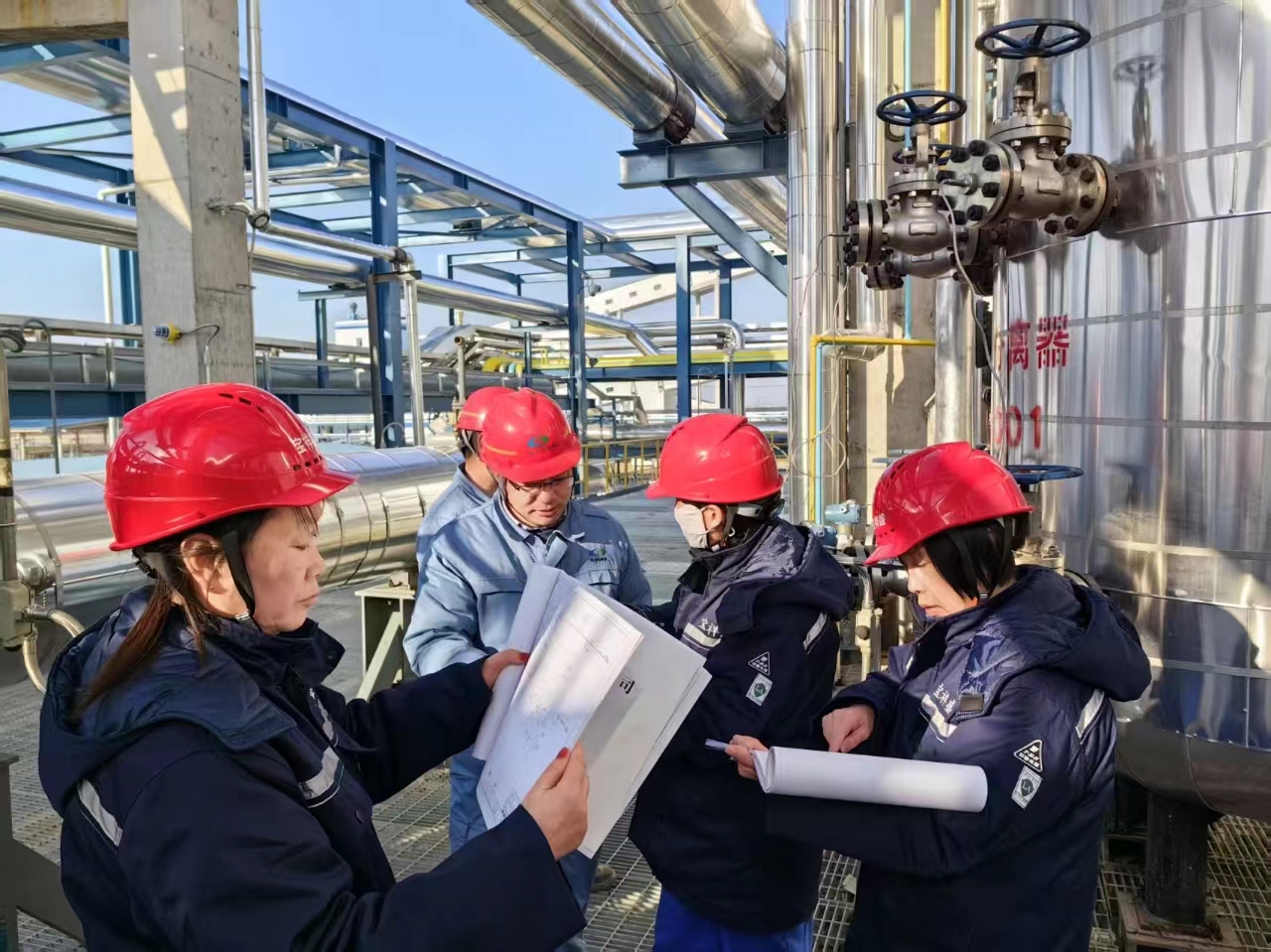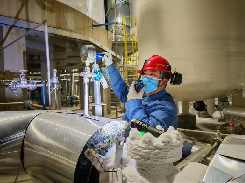 “春節(jié)期間,我們一定堅守崗位,保持最佳狀態(tài),確保各項工作有序推進。” 空分車間員工堅定地說道。“春節(jié)期間更要打起十二分精神,不能有絲毫懈怠。” 他們密切關注著設備的運行參數(shù),仔細記錄著每一個數(shù)據(jù)。“走,除夕夜檢查不能停,一定要確保萬無一失。”夜色中,他們頂著瑟瑟寒風認真巡檢,檢查空壓機運行狀態(tài),保障儀表氣穩(wěn)定供應。為了確保后序工段氮氣吹掃和密封氣供應,空分車間定時對真空液氮儲槽進行充液,為氮氣供應保駕護航。